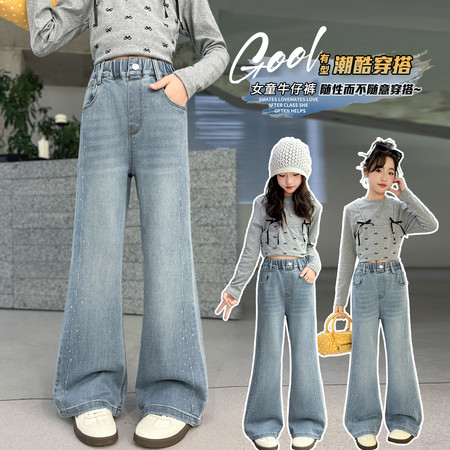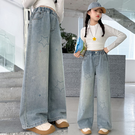 1*5收藏“2607a五角星烫钻绣花阔腿裤”