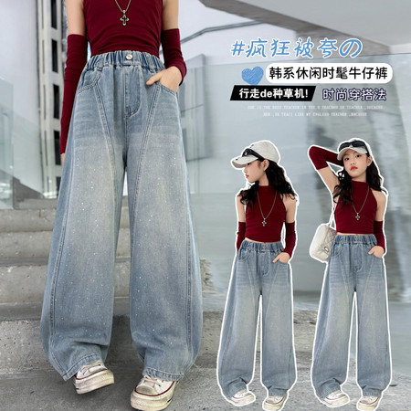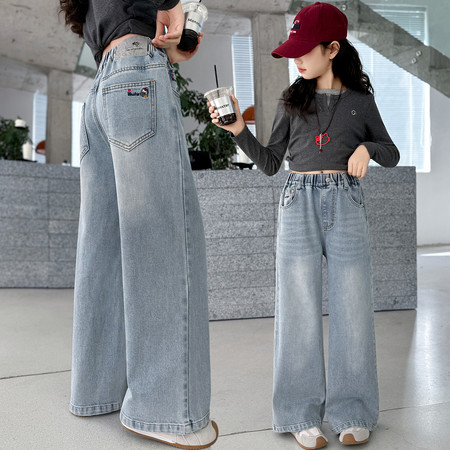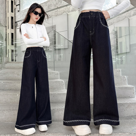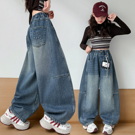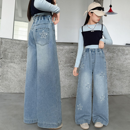 蓝*7下载视频“2605款刺绣K猫阔腿裤”